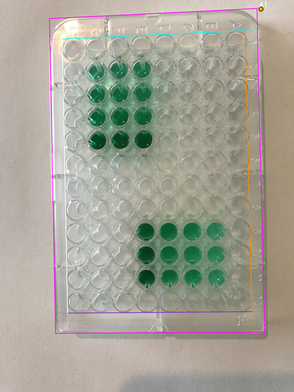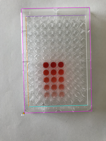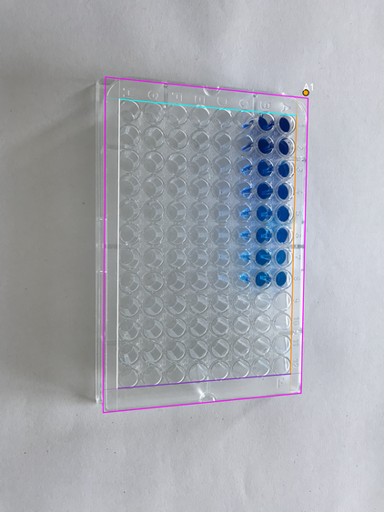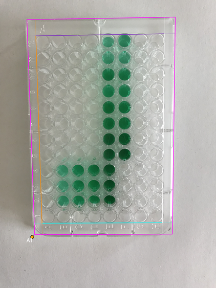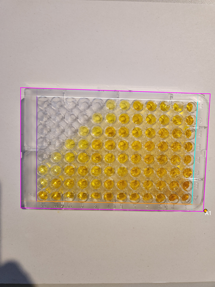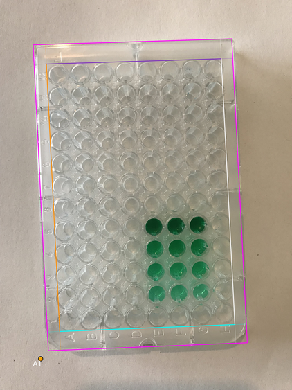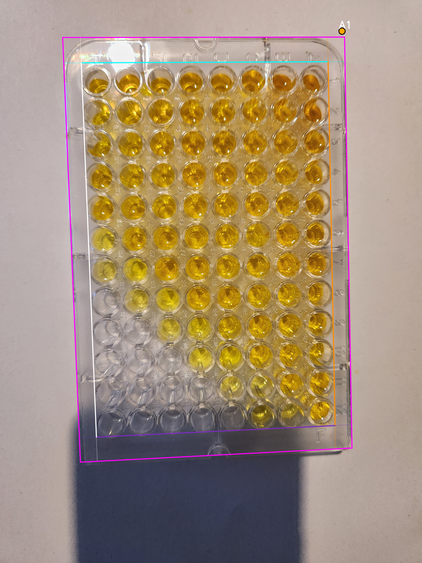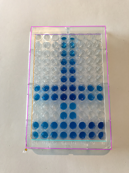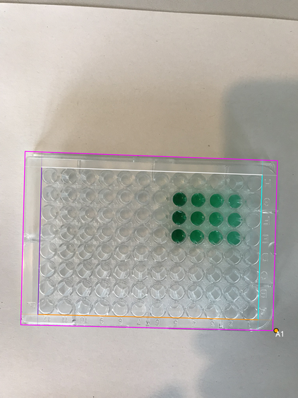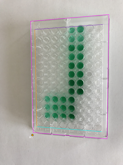 - Wells area boundary: four lines (canonical orientation - the plate is shown upright, with column 1 on the left and row A at the top)